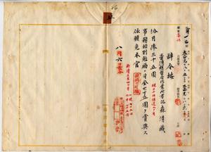 五 台湾総督府作業所書記森清蔵ハ左腕挫傷切断為メ職ニ堪ヘサル旨ヲ以テ辞職願ニ依リ事務格別勉励ニ付キ一時金ヲ賞与シ本官ヲ免ス