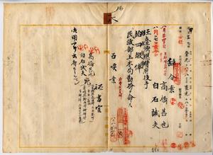 一六 台湾総督府土木局長心得高橋辰次郎ノ内申ニ依リ京都帝国大学理工科大学土木工学科卒業高橋甚也ト白石誠夫ヲ台湾総督府技手ニ任シ民政部土木局勤務ヲ命ス