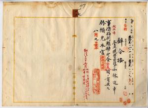 一七 台湾総督府民政部土木局営繕課勤務技手小林近幸ハ疾病ニ罹リ職ニ堪ヘサル旨ヲ以テ辞職願ニ依リ事務格別勉励ニ付キ一時金ヲ賞与ス