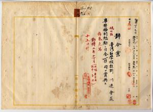 三九 台南庁長松木茂俊ノ内申ニ依リ病気危篤ノ埔姜頭公学校勤務台湾公学校教諭兼校長川連会蔵ニ事務特別勉励ニ付キ一時金ヲ賞与ス