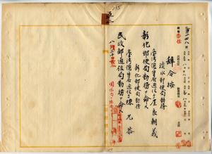 五二 彰化郵便局長吉田秀明ノ内申ニ依リ淡水郵便局勤務台湾総督府通信手屋良朝義ニ彰化郵便局勤務ヲ命シ、彰化郵便局勤務台湾総督府通信手陳允恭ニ民政部通信局勤務ヲ命ス