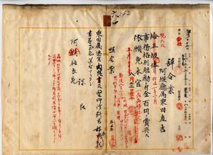 六四 阿緱庁属栗田直吉ハ懲戒事件結了ニ付キマラリアニ罹リ職ニ堪ヘサル旨ヲ以テ辞職願ニ依リ事務格別勉励ニ付キ一時金ヲ賞与シ本官ヲ免ス