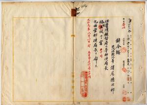 七四 台湾総督府民政部通信局長心得角源泉ノ内申ニ依リ元台湾総督府通信属浜尾徳次郎ヲ台湾総督府三等郵便局長ニ任シ九曲堂郵便局長ヲ命ス