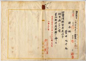 七八 台北郵便局長伊藤金弥ノ内申ニ依リ台北郵便局通信事務員菅田九十九ヲ台湾総督府通信手ニ任シ台北郵便局勤務ヲ命ス