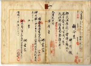 一 台湾総督府民政部殖産局長高田元治郎ノ内申ニ依リ元岡山県私立倉紡病院主任医神川徴ニ移民治療ニ関スル医務ヲ嘱託シ台湾総督府民政部殖産局勤務ヲ命ス