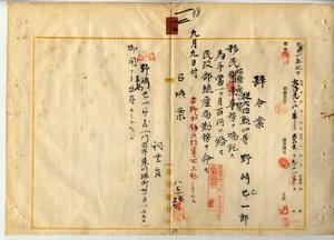 一二 台湾総督府民政部殖産局長高田元治郎ノ具申ニ依リ佐賀県医師野崎己一郎ニ移民治療ニ関スル医務ヲ属託シ殖産局勤務ヲ命ス
