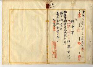 二一 台中医院長事務取扱丹羽習一ノ内申ニ依リ台中庁調剤事務属託佐藤重利ヲ台湾総督府医院調剤師ニ任シ台中病院勤務ヲ命ス