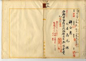 二八 台湾総督府民政部財務局長中川友次郎ノ内申ニ依リ元台湾総督府雇高尾保ニ在職中事務格別勉励ニ付キ一時金ヲ賞与ス