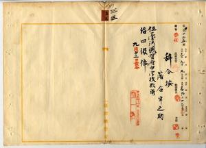 三三 台湾総督府中学校長代理広江万次郎ノ内申ニ依リ元清国四川省立優級師範学堂教習落合半之助ヲ台湾総督府中学校教諭ニ任ス