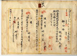 三八 台湾総督府阿里山作業所長事務取扱新元鹿之助ノ内申ニ依リ早稲田大学卒業生牧田平太郎ヲ台湾総督府阿里山作業所書記ニ任ス