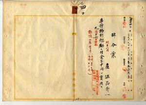 四〇 台湾総督府民政部財務局長中川友次郎ノ内申ニ依リ病気ノ為メ辞職願出ノ台湾総督府雇温品寿一ニ事務格別勉励ニ付キ一時金ヲ賞与ス