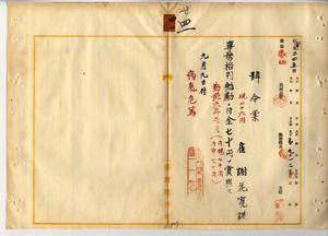 四一 台湾総督府民政部通信局長心得角源泉ノ内申ニ依リ病気危篤ノ台湾総督府雇謝花寛謨ニ事務格別勉励ニ付キ一時金ヲ賞与ス