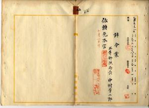 五 台湾総督府三等郵便局長中村芳二郎ハ麻剌里亜ニ罹リ職ニ堪ヘサル旨ヲ以テ辞職願ニ依リ本官ヲ免ス