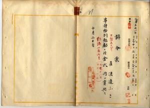 一三 台湾総督府民政部通信局長心得角源泉ノ内申ニ依リ台湾総督府雇渡辺ふさニ事務格別勉励ニ付キ一時金ヲ賞与ス
