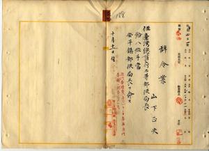 三七 台湾総督府民政部通信局長代理角源泉ノ内申ニ依リ台南郵便局通信事務員山下正夫ヲ台湾総督府三等郵便局長ニ任シ安平鎮郵便局長ヲ命ス