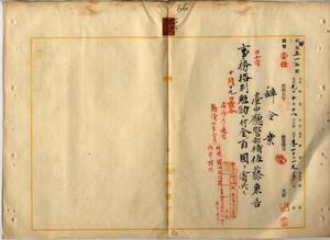 六六 台中庁長枝徳二ノ内申ニ依リ疾病ノ為メ退官ヲ出願シタル台中庁警部補佐藤東吾ニ事務格別勉励ニ付キ一時金ヲ賞与ス