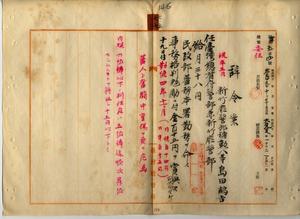 七七 台湾総督府民政部蕃務本署長大津麟平ノ内申ニ依リ新竹庁方面隘勇線前進中ニ負傷シ危篤トナリタル新竹庁警部補島田鶴吉ヲ台湾総督府警部兼新竹庁警部ニ任シ増俸ノ上民政部蕃務本署勤務ヲ命シ事務格別勉励ニ付キ一時金ヲ賞与ス