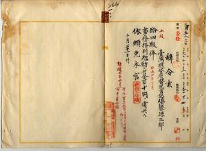 一〇〇 台湾総督府医院書記佐藤孫三郎ハ脚気ニ罹リ職ニ堪ヘサル旨ヲ以テ辞職願ニ依リ昇級ノ上事務格別勉励ニ付キ一時金ヲ賞与シ本官ヲ免ス