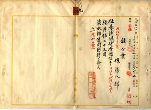 九 淡水郵便局長小野塚斧太郎ノ内申ニ依リ淡水郵便局通信助手後藤八郎ヲ台湾総督府通信手ニ任シ淡水郵便局勤務ヲ命ス