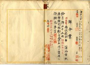 一三 南投庁技手蒲地幸熊ハ脚気ニ罹リ職ニ堪ヘサル旨ヲ以テ昇給ノ上事務格別勉励ニ付キ一時金ヲ賞与シ辞職願ニ依リ本官ヲ免ス