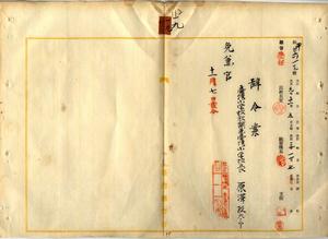 一九 花蓮港庁長ノ内申ニ依リ台湾小学校教諭兼台湾小学校長原沢政太郎ノ兼官ヲ免ス
