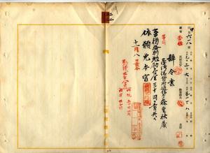 二二 宜蘭郵便局在勤台湾総督府通信手森重秋蔵ハ疾病ニ罹リ職ニ堪ヘサル旨ヲ以テ退官願ニ依リ事務格別勉励ニ付キ一時金ヲ賞与シ本官ヲ免ス