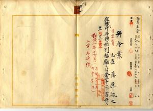 四一 台湾総督府民政部殖産局長高田元治郎ノ具申ニ依リ志願入営ノ為メ依願退職ノ元雇藤原祇之ニ在職中事務格別勉励ニ付キ一時金ヲ賞与ス