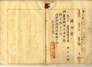 六五 台湾総督府民政部通信局長心得角源泉ノ内申ニ依リ台湾総督府属井上三郎ヲ台湾総督府通信属ニ任シ台湾総督府民政部通信局勤務ヲ命ス
