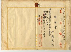 五 台湾総督府民政部通信局長角源泉ノ内申ニ依リ元通信属伊藤寅蔵ヲ台湾総督府三等郵便局長ニ任シ、六亀里郵便局長ヲ命ス