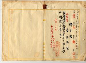 一六 台湾総督府民政部殖産局長中川友次郎ノ内申ニ依リ雇宮嶋潔ニ事務格別勉励ニ付一時金ヲ賞与ノ上御用済ニ付キ雇ヲ免ス