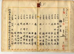三七 台湾総督府財務局長中川友次郎ノ内申ニ依リ税務官ノ賀来惟義、技師ノ藤本鉄治、属ノ古本広允・相良三熊・平田光太郎・渡利友吉・古川豊・中村寿太郎・木島栄則・時枝佼四郎、技手ノ前島知徳・小沢寛治・狼浦三郎、通訳ノ竹崎春凞、休職属ノ福島武之助ニ税務員養成ニ際シ事務格別勉励ニ付キ慰労金トシテ一時金ヲ賞与ス