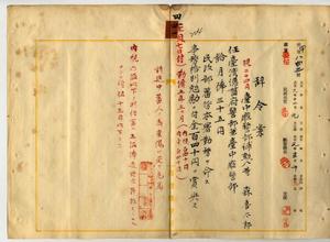四一 台湾総督府民政部蕃務本署長大津麟平ノ稟申ニ依リ台中庁警部補森喜太郎新竹庁李練山方面隘勇線前進ニ参加シタルモ一二月一日右下腹部ニ貫通銃創ヲ負ヒ重態ニ陥リタル旨及ヒ本年四月一九日ヨリ六月九日マテ南投庁白狗方面隘勇線前進ニ参加シ大ニ功アリタル旨ヲ以テ台湾総督府警部兼台中庁警部ニ任シ民政部蕃務本署勤務ヲ命シタル上事務格別勉励ニ付キ一時金ヲ賞与ス