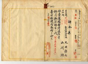 七一 台中郵便局長野村勘四郎ノ内申ニ依リ事務員ノ丸田孫七・山川律ヲ台湾総督府通信手ニ任シ台中郵便局勤務ヲ命ス