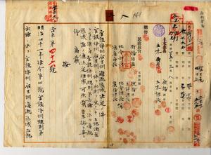 八 官設課嘩后里嘩ノ水利ヲ受クヘキ土地調査ヲ了シタルヲ以テ明治四一年律令第四号官設課嘩規則第六条ニ依リ官設課嘩后里嘩灌漑区域決定ノ件(告示第四六号)