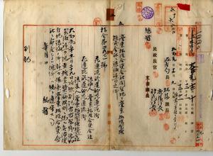 五 台東拓殖合資会社社長荒井泰治・台東拓殖製糖株式会社社長荒井泰治ノ事業継承願ニ依ル台東拓殖合資会社ハ台東拓殖製糖株式会社ニ合併シタル為メ台東拓殖合資会社ノ開墾地タル台東庁南郷卑南、同郷大埔、広郷加路蘭、同郷加走湾字大掃別社・中庄ノ開墾地ヲ花蓮港庁蓮郷花蓮港街台東拓殖合資会社ヨリ同街台東拓殖製糖株式会社ヘ譲渡許可ノ件(指令第二九七一号)〈民殖第一四四〇号〉
