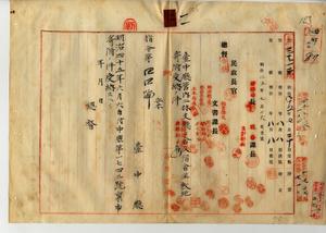 一一 台中庁長枝徳二ヨリ稟申ノ洪成後見人洪王生ヨリ願ヒ出テノ台中庁二林下堡二林庄ノ建物敷地並ニ洪紅毛ヨリ願ヒ出テノ台中庁二林下堡二林庄ノ建物敷地ト建物ヲ二林支庁庁舎及ヒ宿舎ノ敷地トシテ寄附ニ付キ受納ノ旨認可ノ件(指令第四四号)