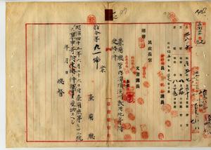 一四 台南庁長松木茂俊ヨリ稟申ノ陳全順、劉瑞山・劉錫王、胡葛、林巽・蔡福枝、曽茂、葉物・陳明・蘇振芳、陳珍・陳蕃復・劉江抱・陳化、陳金長、陳双、林宅、黄琴、曽茂ヨリ願ヒ出テノ台南庁新化西里蕃仔椙庄ノ田、蘇管・蘇和尚・蘇瀬、楊盈源、李添丁・辜請・曽炎、葉仙進、鄭為、張田宇、荘氏不纏、呉氏潜、蔡登賢、楊窕・楊環・楊寿・高条謨ヨリ願ヒ出テノ台南庁新化西里蕃仔椙庄ノ畑、陳珍・陳番復、黄琴ヨリ願ヒ出テノ台南庁新化西里社内庄ノ田ヲ潭頂渓川敷用地トシテ寄附ニ付キ受納ノ旨認可ノ件(指令第九一号)
