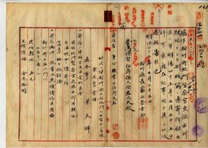 一六 葉其厚管理新竹庁参事葉文暉ヨリ願ヒ出テノ新竹庁竹北一堡新竹街土名北門外ノ建物敷地ヲ北門警察官吏派出所用敷地トシテ寄附アリタルニヨリ受納シタルニ付キ新竹庁長家永泰吉郎ヨリ報告ノ件