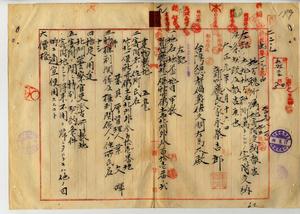 一九 葉其厚管理人葉文暉ヨリ願ヒ出テノ新竹庁竹北一堡新竹街土名北門外ノ建物敷地ヲ北門警察官吏派出所敷地トシテ寄附アリタルニヨリ受納シタルニ付キ新竹庁長家永泰吉郎ヨリ報告ノ件