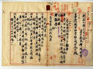 一〇 下永兼敏・業主周可安管理人周万園・周発・周烏嘴・周江英・周可安管理人周宗渓・周可安管理人周清波・周可安管理人周門許環・周可安管理人周杏・林祖寿・林熊祥ヨリ台北庁大加蚋堡古亭村庄ノ畑・原野・建物敷地ヲ堤防用トシテ寄附ヲ願ヒ出テタルニ付キ台北庁長井村大吉ヨリ受納方報告ノ件