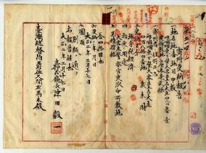 一一 袁来財ヨリ嘉義庁沿井荏東下堡大客庄土名大庄ノ建物敷地ヲ大客庄警察官吏派出所敷地トシテ寄附ニ付キ嘉義庁長津田毅一ヨリ受納方報告ノ件