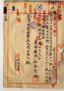 一五 明治製糖株式会社専務取締役相馬半治ヨリ出願ノ赤山堡抜仔林庄曽文渓河岸ニ水源喞筒場ヲ設ケ同所ヨリ河水ヲ吸揚シ貯水塔ニ入レ是レヨリ鉄管及ヒ水路鑿導水シ蕃仔田庄ニテ同会社ノ経営セル農場ニ給水スル蕃仔田水路新設ヲ認可(指令第六八号)シ次テ台南庁長松木茂俊ヨリ竣功シタル旨報告ノ件