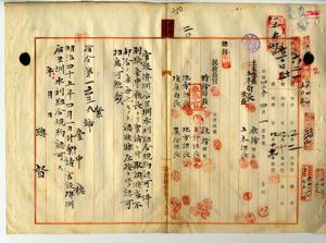 二〇 台中庁長枝徳二ヨリ稟請ノ官設課嘩后里嘩水利組合創立委員ノ黄炭・張玉順・連進興・游風炉・陳其祥・李金嘩・張蚶・蔡清俊・陳川先・陳籐・蘇富喜ヨリ申請アリタル官設課嘩后里嘩水利組合規約認可ノ件(指令第一六三九号)