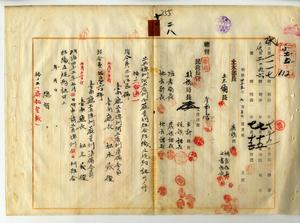二八 台南庁公共課嘩阿公店嘩及ヒ同杉荳嘩準備委員台南庁長松木茂俊ヨリ申請ノ嘩組合組織及規約認可ノ件(阿公店嘩組合ヘ指令第三〇四五号・杉荳嘩組合ヘ指令第三〇四六号)