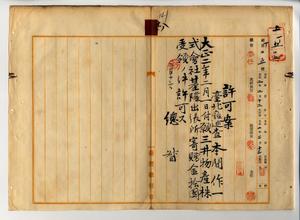 八 大正元年一二月一八日午後一二時頃台北庁基隆堡田藔港庄三井物産株式会社火薬庫ヨリダイナマイト四箱二千発ガ台北庁石碇堡四脚亭庄義奥炭礦石炭坑夫ノ李克昌(三〇年)、林金献事林何絨(三二年)、許奥(未検挙)ニヨリ盗マレタル処同月二五日午前八時過基隆支庁勤務巡査本間作一ガ窃盗犯タル林何絨ト李克昌ヲ検挙シ賍物モ押収シタルヲ以テ基隆曽仔藔ノ三井物産株式会社基隆出張員村上純人ヨリ本間巡査ヘ功労金一〇円ノ寄贈ヲ願出デタルニ付キ受領方許可ノ件