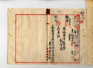 一二 依願退官シタル元南投庁属吉田貫六郎ノ請求ニヨリ恩給証書ヲ嘉義庁ヘ送付ノ件