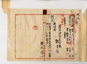 三 疾病ニ罹リ退官シタル元台湾総督府通信属勝間誠一ノ請求ニヨリ恩給証書ヲ大阪府庁ヘ送付ノ件