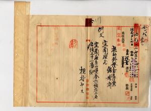 八 故宜蘭庁属植村靖寡婦植村ヤスヨリ官吏遺族扶助法第一条第三項ニ依リ遺族扶助料支給方ノ請求アリタルニヨリ遺族扶助料証書ヲ宜蘭庁ヘ送付ノ件