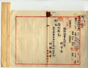九 マラリヤニ罹リ退官シタル元阿緱庁属村瀬新吉ノ請求ニヨリ恩給証書ヲ愛知県庁ヘ送付ノ件