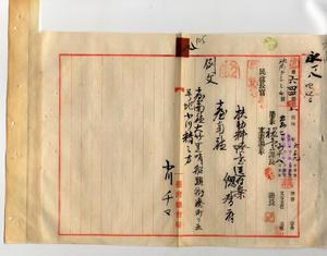 八 故臨時台湾総督府工事部書記小川良太郎遺族小川チマノ請求ニヨリ遺族扶助料証書ヲ台南庁ヘ送付ノ件